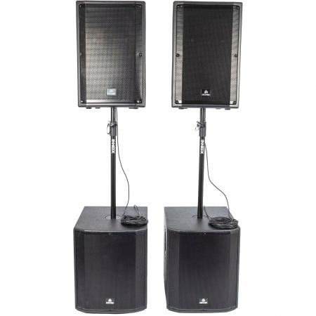 Het gaat hier om een 2.2 speaker audioset bestaande uit twee grote actieve subwoofers en twee grote actieve satelliet-topluidsprekers. Ook zijn er twee 35 mm tussenpalen meegeleverd zodat je de fullrange luidsprekers veilig kan monteren bovenop de 18 inch subs. Omdat het hier om een uitgebreide actieve luidsprekerset gaat is deze ook schaalbaar. Zo kan je zonder problemen de speakers ook los van elkaar inzetten of juist uitbreiden als je meer volume en spreiding nodig hebt.